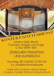 Im Mittelpunkt steht diesmal Johann Sebastian Bachs Toccata, Adagio und Fuge C-Dur BWV 564 – ein Werk voller Spannung zwischen festlicher Strahlkraft und berührender  Innerlichkeit - gespielt von Christian-Markus Raiser an der Remy-Mahler-Orgel.