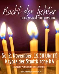 Gesänge aus Taizé, Stille, Licht und gemeinsames Gebet prägen die „Nacht der Lichter“ in der Krypta der Stadtkirche Karlsruhe. Eingeladen sind alle, die einen ruhigen, meditativen Abend erleben möchten – unabhängig von Konfession.